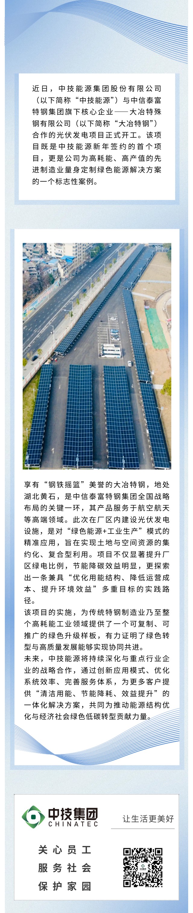 中技能源2026年首个项目——大冶特殊钢光伏项目正式开工