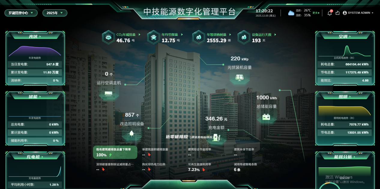 Regarding the carbon neutrality management platform, it integrates multiple functions such as energy metering, carbon emission management, and equipment maintenance. Relying on data visualization analysis, energy efficiency evaluation, and intelligent alerts, the platform enables refined management and scientific decision-making for the building’s energy system.